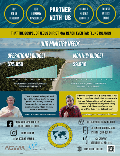 Resources Newsletter Summer Newsletter 2025- ENGLISH Summer Newsletter 2025 – SPANISH Media Introduction to our ministry Hear Area Director Bryan Webb explain the need for pastoral development in the islands. Case for Support Case for Support – Front (Updated January 2024) Case for Support – Back Share this: Share on X (Opens in new window) X Share on Facebook (Opens in new window) Facebook Like Loading...